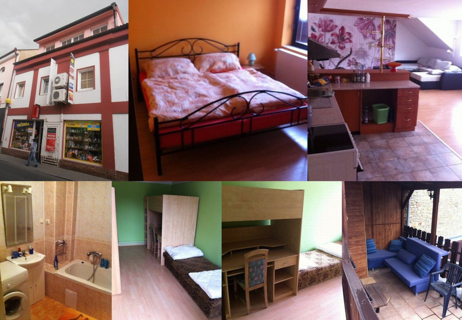 Accommodation: Dva luxusně vybavené byty (apartmány) v podkroví domu - větší (pro 5-6 osob) a menší (pro 2-4 osoby). V každém apartmánu je kuchyně, koupelna, sedací souprava, internet a kabelová TV. V menším apartmánu je navíc terasa o velikosti 20 m2. Parkování ve dvoře domu.