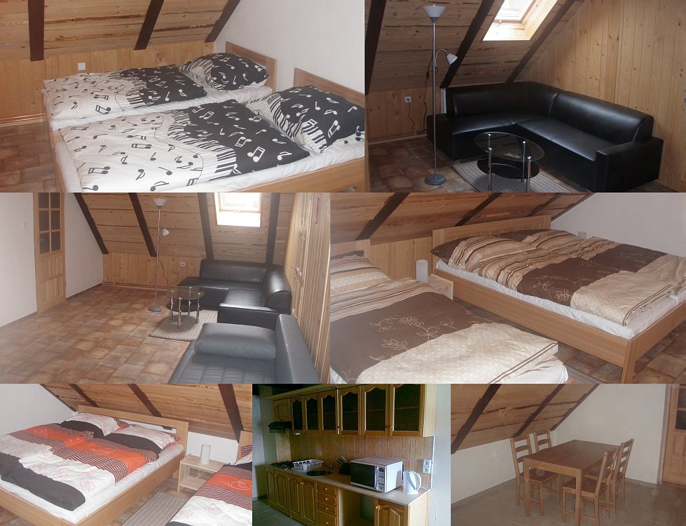 Accommodation: Útulná venkovská chalupa procházející kompletní rekonstrukcí (vnější fasáda na obnovu ještě čeká, proto se nenechte odradit prvním dojmem). V chalupě je obyvatelné patro pro 10 osob. Nachází se zde 3 ložnice (2x3, 1x4 lůžka), plně zařízená kuchyň s jídelním koutem, předpokoj s posezením a 2 koupelny se sprchovým koutem a WC. V přízemí jsou momentálně nevyužité prostory, úložiště lyžařského vybavení, WC a kotelna. Vytápění celé chalupy zajišťuje kotel na tuhá paliva. Celá chalupa je nekuřácká.
