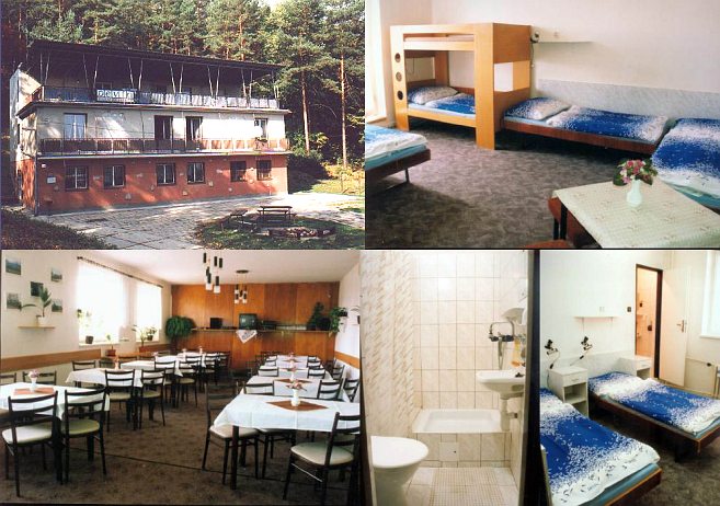 Accommodation: Rekreačné stredisko hotelového typu v 12 izbách (2x4, 4x3, 4x2, 2x5 lôžok). Každá izba má samostatné WC, umývadlo, sprchový kút, chladničku, TV, video. Prosíme hostí, aby si priniesli prezuvky. Celodenné stravovanie (domáca strava) s možnosťou dojednať polopenziu a detské porcie. Spoločenská miestnosť, stolný tenis, stolný futbal, bufet, požičiavanie videokaziet, kníh, športových potrieb (lopty, tenisové rakety), pripojenie na internet. Grilovanie nad ohniskom.