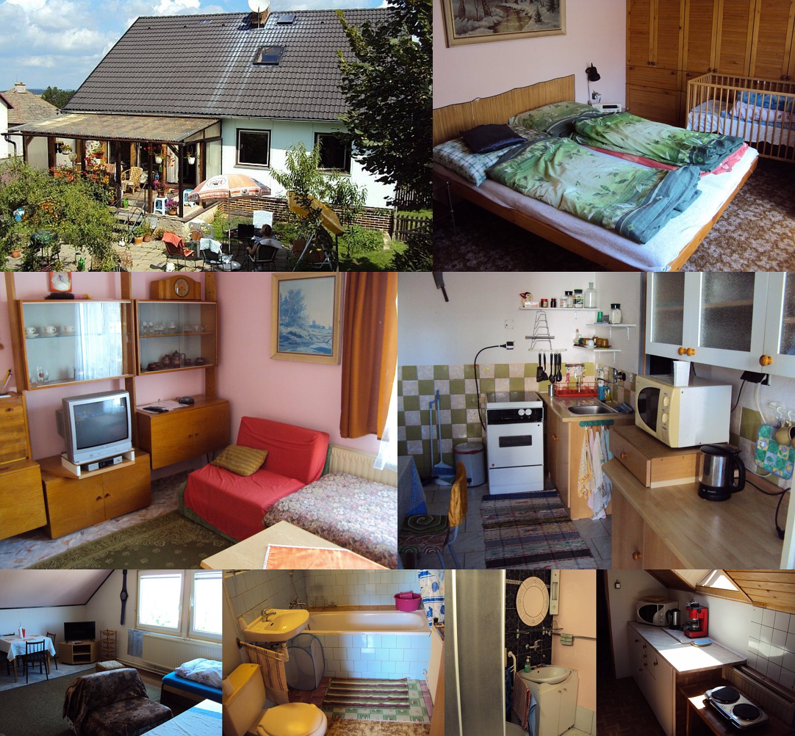 Accommodation: Dva apartmány (byty) 2+1 a 1+1 s vlastním vchodem, celkem pro 6 lidí. Apartmány jsou kompletně zařízené včetně vybavené kuchyně, ledničky, televize, koupelny, WC, povlečení. Možnost ubytování se psem. WiFi Internet. K dispozici je dětská postýlka.