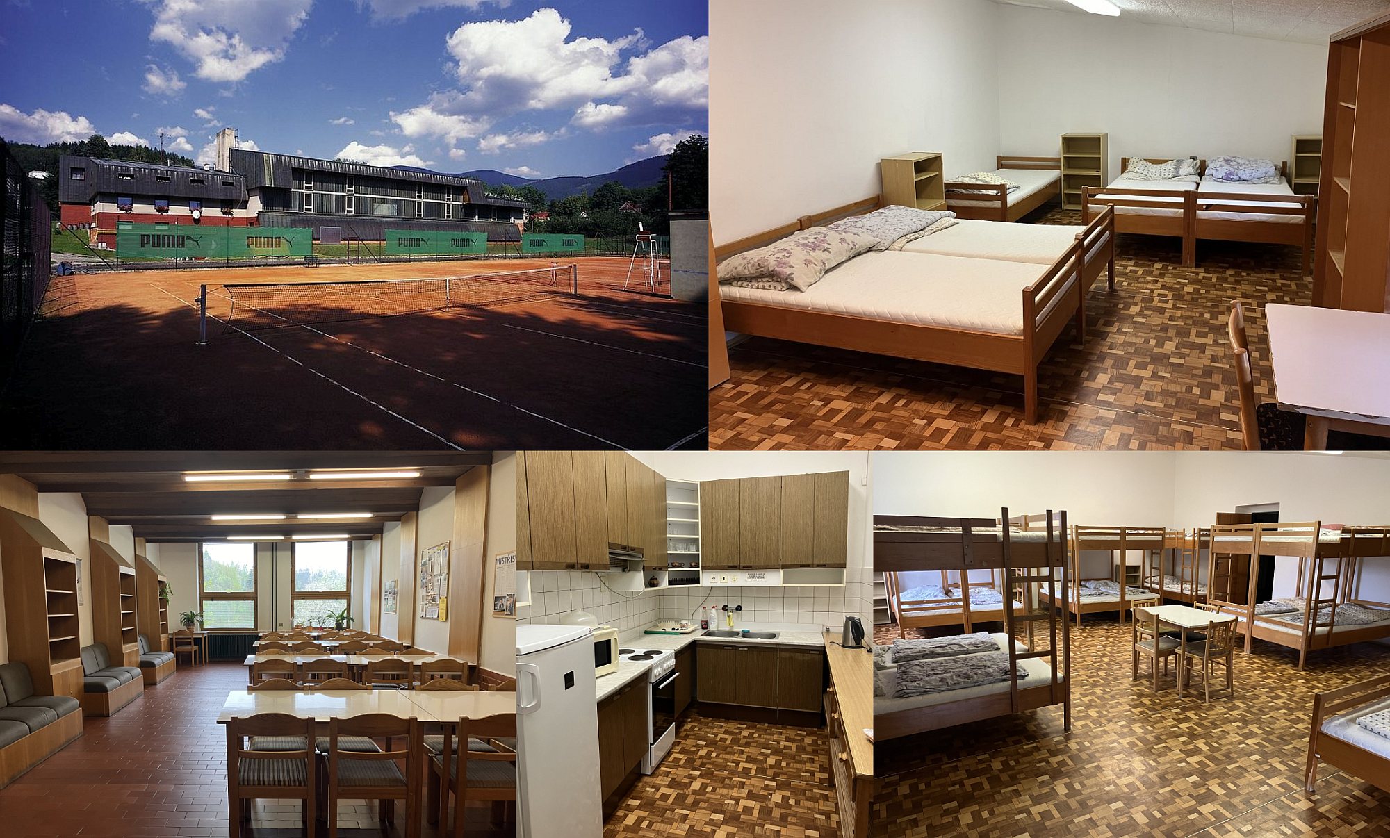 Accommodation: Ubytovna s kapacitou 37 lůžek, vhodná pro skupinové ubytování (školy, sportovní soustředění, kurzy atd.), ale možné je i ubytování jednotlivců. V ubytovně jsou 3 pokoje (5, 12 a 18 lůžek), společné soc. zařízení, malá kuchyňka a společenská místnost (klubovna). Možnost pronájmu sportovní haly a dalších sportovních zařízení. Možnost stravování v penzionech v docházkové vzdálenosti.