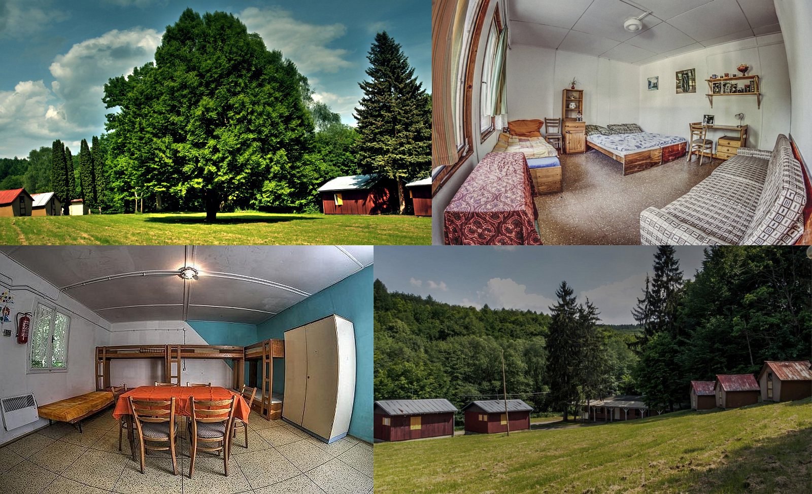 Accommodation: Kemp s chatami, apartmány a prostorem ke stanování až pro 100 stanů. Chatky: 12x 2-lůžková (bez příslušenství), 10x 4-lůžková (bez příslušenství), 4x 10-lůžková (s vlastním WC) a 2x 5-lůžková (s vlastním WC a kuchyňkou), nutný je vlastní spacák. Součástí areálu je plně vybavená kuchyň (možnost zajištění stravy dle domluvy, až pro 120 osob), společenská místnost (jídelna), společné sociální zařízení se sprchami, betonové hřiště a ohniště. Kemp je vhodný především pro letní dětské tábory, školní výlety, rodinné pobyty, firemních akce či sportovní soustředění. Kemp je v provozu v měsících 04-10.