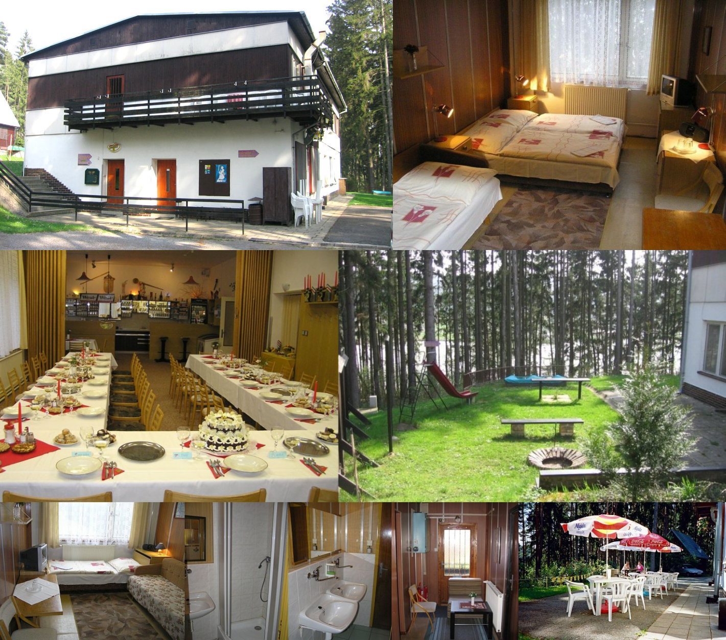 Accommodation: Penzion s 29 lůžky v 11 pokojích (4x2, 7x3 lůžka, možnost přistýlek). Sociální zařízení i sprchy jsou společné na patře. V penzionu je vlastní restaurace s nekuřáckou jídelnou (snídaně, obědy i večeře, kapacita 46 míst) a letní zahrádkou. Před penzionem je posezení s ohništěm, venkovní krb a gril, hřiště na odbíjenou a petanque, dětské pískoviště, ruské kuželky a parkoviště. Penzion je vhodný pro rodiny s dětmi staršími 3 let, školy v přírodě, sportovní pobyty atd.