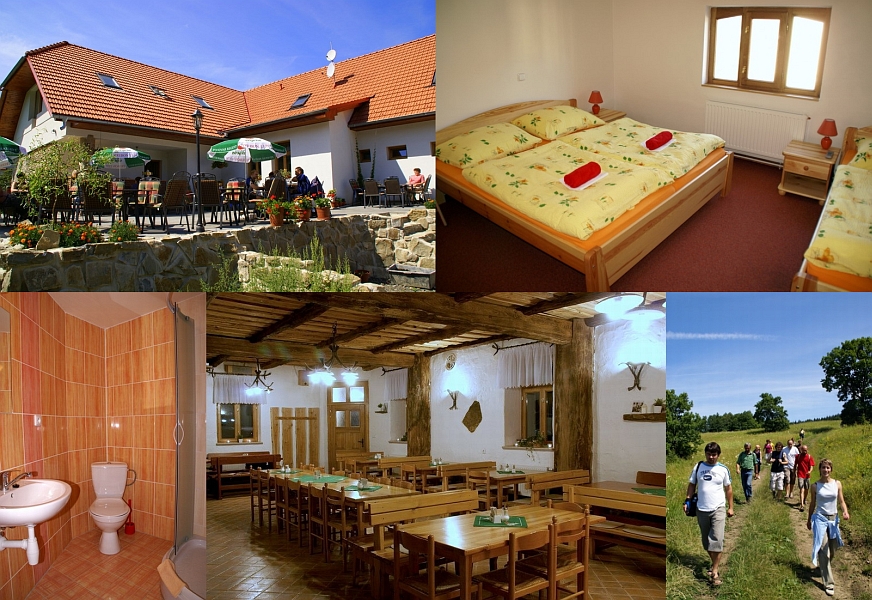 Accommodation: Penzion ve zrekonstruované budově původního hostince z konce 19. století, součást památkové zóny. 11 příjemně zařízených 2- až 5-lůžkových pokojů v podkrovních prostorách. Součástí pokojů je vlastní koupelna, toaleta a televize. Zdarma dostupné internetové připojení. Úschova sportovních potřeb, rychloopravy jízdních kol, speciální nabídka jídel pro cyklisty. Vhodné pro pořádání firemních setkání, oslav i svateb. Parkování přímo u penzionu zdarma. V hostinci výborná tradiční kuchyně, rozehřátý krb zvláště vhodný pro zimní večery, letní terasa s barem.