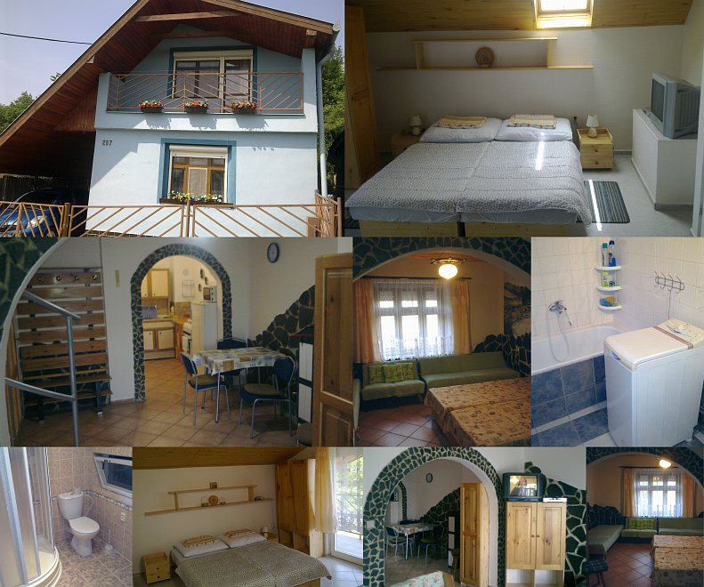 Accommodation: Dvojpodlažný murovaný domček pre 8 osôb. Prízemie: veľká spoločenská miestosť (jedálenský kút, 4 lôžka, TV+SAT), vybavená kuchynka (chladnička s mraziakom, mikrovlnka, elekt. dvojplatnička, rýchlovarná kanvica), kúpeľňa (vaňa, umývadlo, WC, práčka). Poschodie: priestranná spálňa (4 lôžka, balkón), kúpelňa (umývadlo, WC, sprchovací kút). Vonku dve samostatné trávnaté plochy (jedna je terasovite vyvýšená). Dom je samostatne oplotený, v záhrade je možnosť grilovania a opekania. Parkovanie pred domom. Ubytovanie len cez letné obdobie (mesiace 05-09).