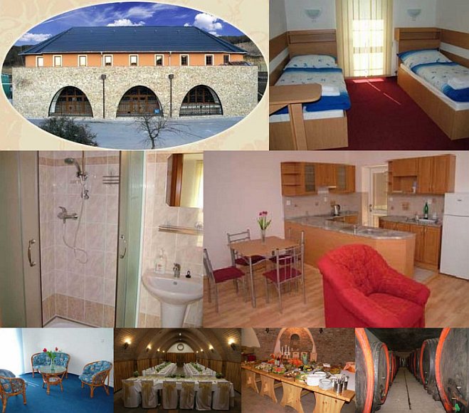 Accommodation: Penzion s reprezentačním vinným sklepem a ubytováním ve 2-lůžkových pokojích a jednom 2-lůžkovém apartmánu. Každý pokoj i apartmán mají vlastní soc. zařízení, apartmán má navíc kuchyňku. Ve sklepě je možné pořádat školení či večírky. Zajištění stravování po dohodě. Široká nabídka vín, včetně možností ochutnávání.
