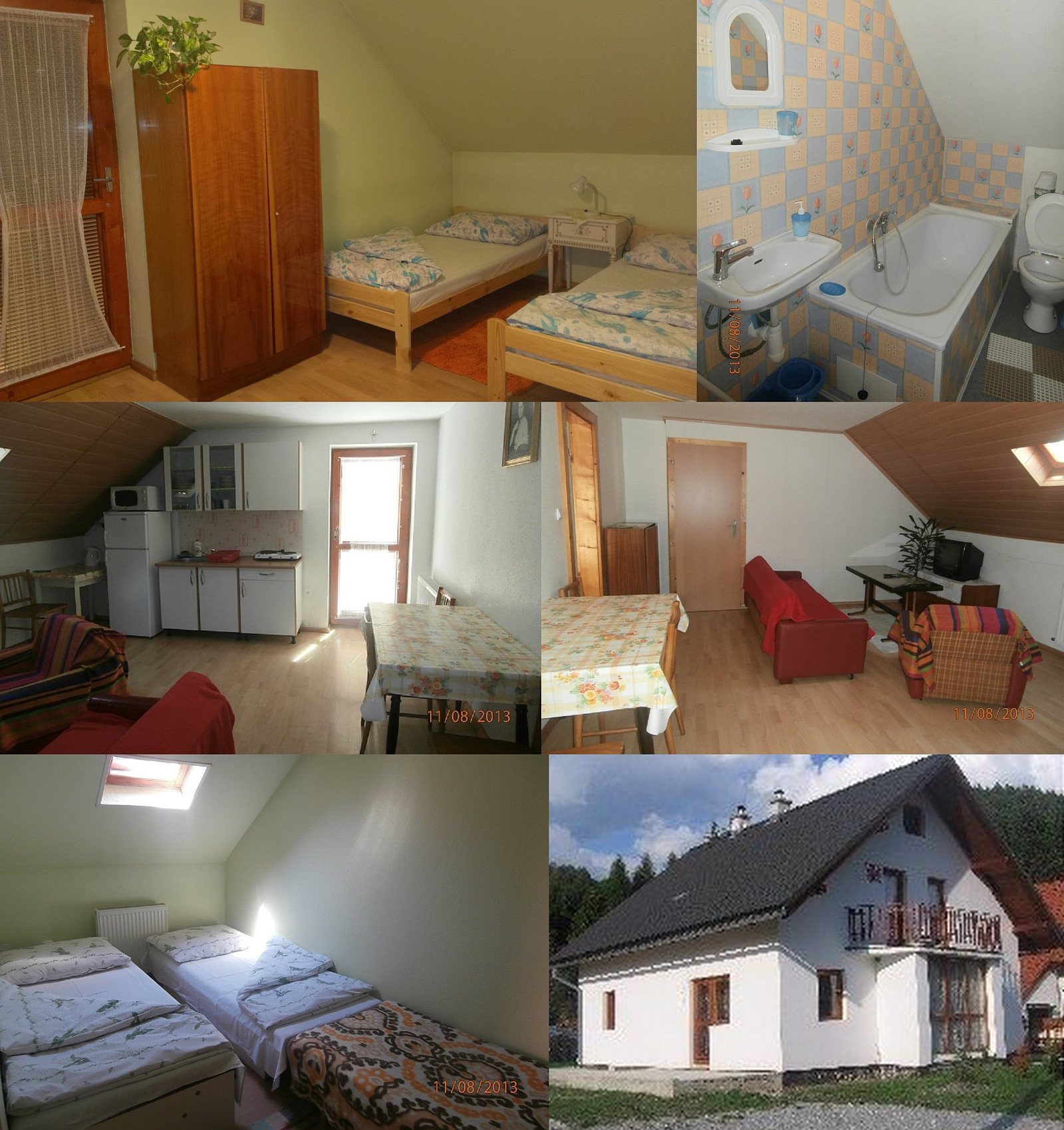 Accommodation: Apartmán pre max. 6 osôb v oddelenej časti rodinného domu. Dve izby (3-posteľová + 2-posteľová). Kúpeľňa + WC. Spoločenská miestnosť s TV a kuchynským kútom (chladnička, varná kanvica, varič). Vonkajšie posedenie (ohnisko). Parkovisko pred domom.
