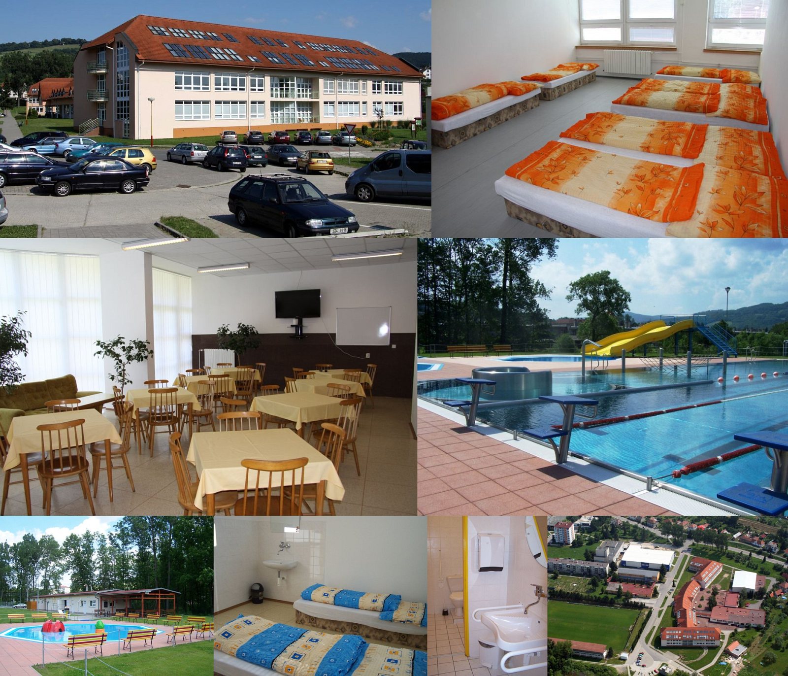 Price: Celoročně: 1 noc 350 Kč/os, 2-3 noci 270 Kč/os/noc, 4 a více nocí 250 Kč/os/noc, i při ubytování jen 1 osoby na pokoji. Skupiny 40 a více osob 250 Kč/os/noc (i při ubytování jen na 1 noc). Snídaně 100 Kč, oběd 130-135 Kč, večeře 115-120 Kč. Ceny jsou konečné (včetně DPH, všech poplatků, povlečení i energií). Pro ubytované za 40 Kč/os/den zvýhodněný vstup ke koupališti (jen pro skupiny 20 a více osob).