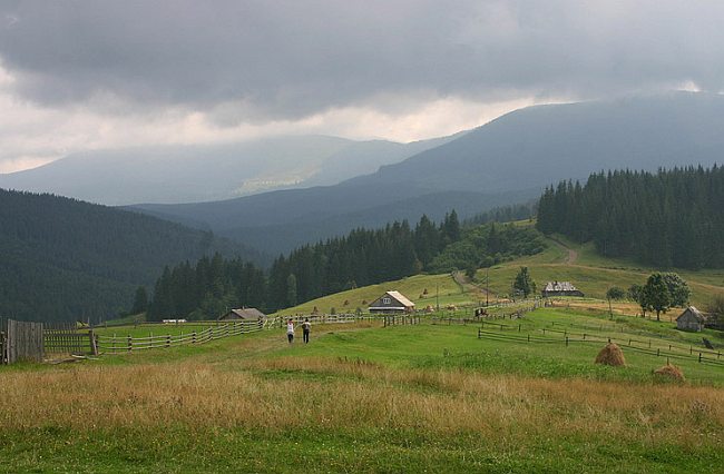 Malebné pohoří na severu Zakarpatí s krásnými loukami a vesničkami s mnoha dřevěnými kostely.